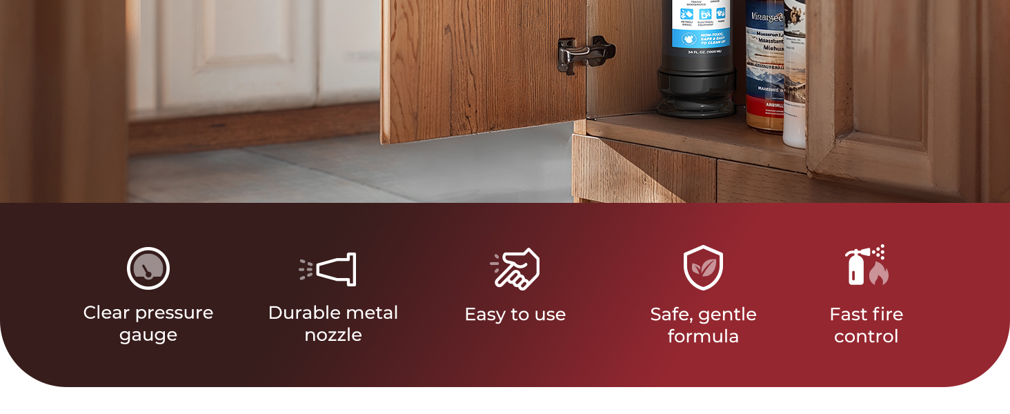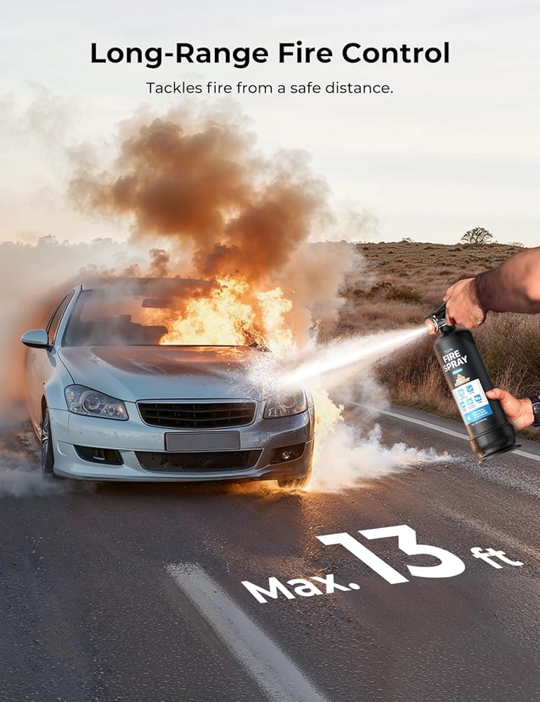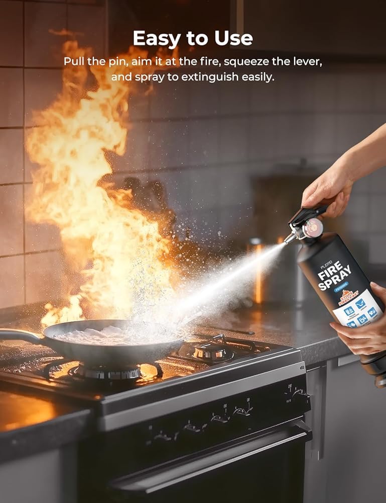 Fast, Easy Fire Control: The patented handle provides effortless, safe emergency operation; pull the safety pin out and aim the extinguisher at the fire up to 3 ft away, sweeping side-to-side to control the fire quickly and effectively without reigniting
