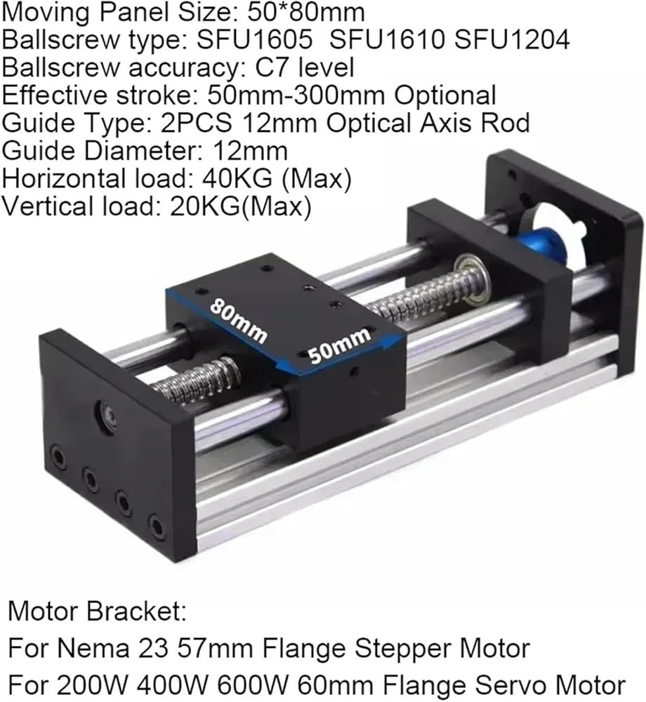 X-Y-Z Axis Linear Rail Guide Slide Stage 50mm Width BallScrew SFU1204 1605 1610(200mm SFU1204)