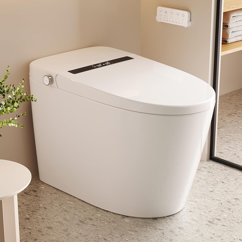 Instant Warm Water Bidet & Custom Care: Enjoy personalized comfort with instant warm water cleansing. Adjust water temperature, pressure, and spray position (front/rear/oscillating) via the wireless remote. This toilet with bidet built in ensures year-round comfort, even in winter.