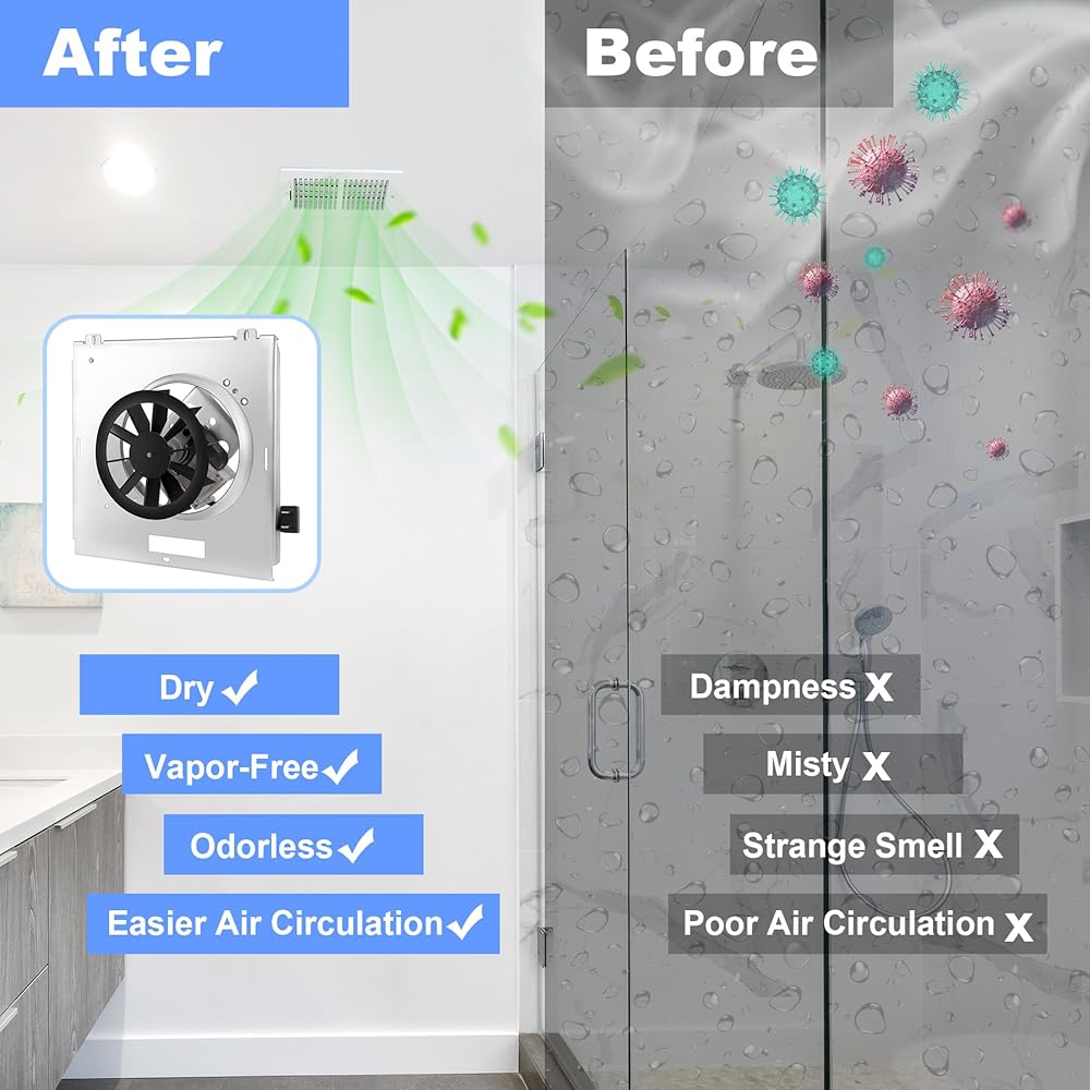 【Perfect Experience】Bathroom exhaust fan features high speed rotation and low noise. Faster wind speed and greater airflow. Achieve better ventilation, dehumidification, heat dissipation and deodorisation. Perfect solution to the following problems: unclean and unhygienic mould on the surface of wall tiles, suffocating water vapour in the bathroom, unpleasant smell after using the toilet, humid home environment