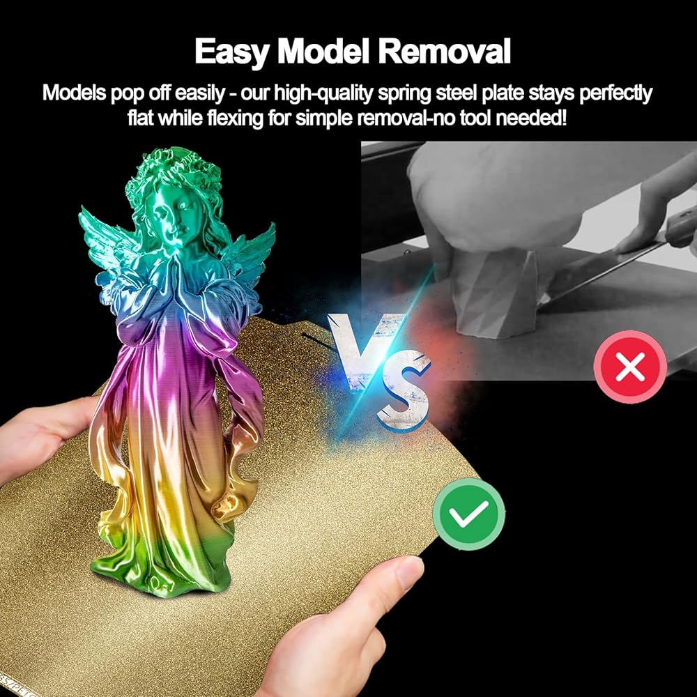 【Excellent Flatness】P1S A1 X1C build plate ensures firm adhesion, warp-free bending, and effortless model release.