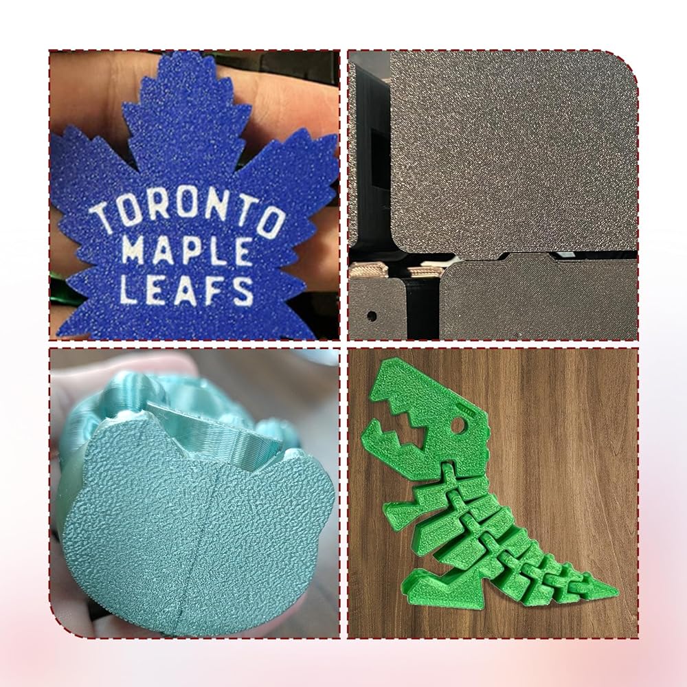 【Thicken PEI Coating】PEI spring steel sheet features a thick, power-sprayed coating, creating a rough, textured surface that adds a unique finish to model bases.