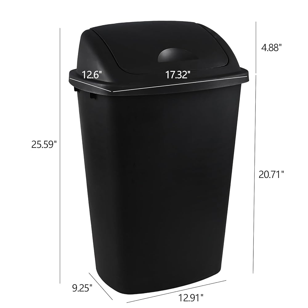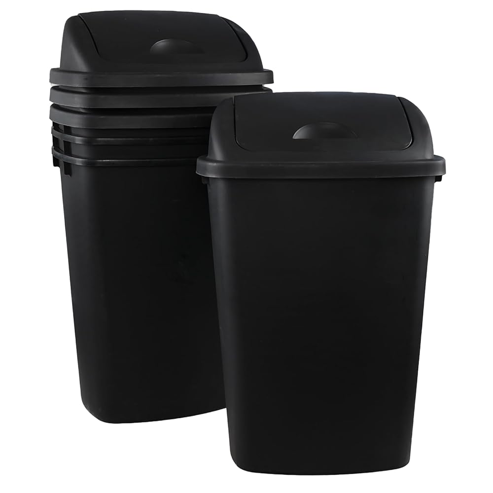 4-Pack 6 Gallon Plastic Kitchen Swing Top Garbage Can in Black