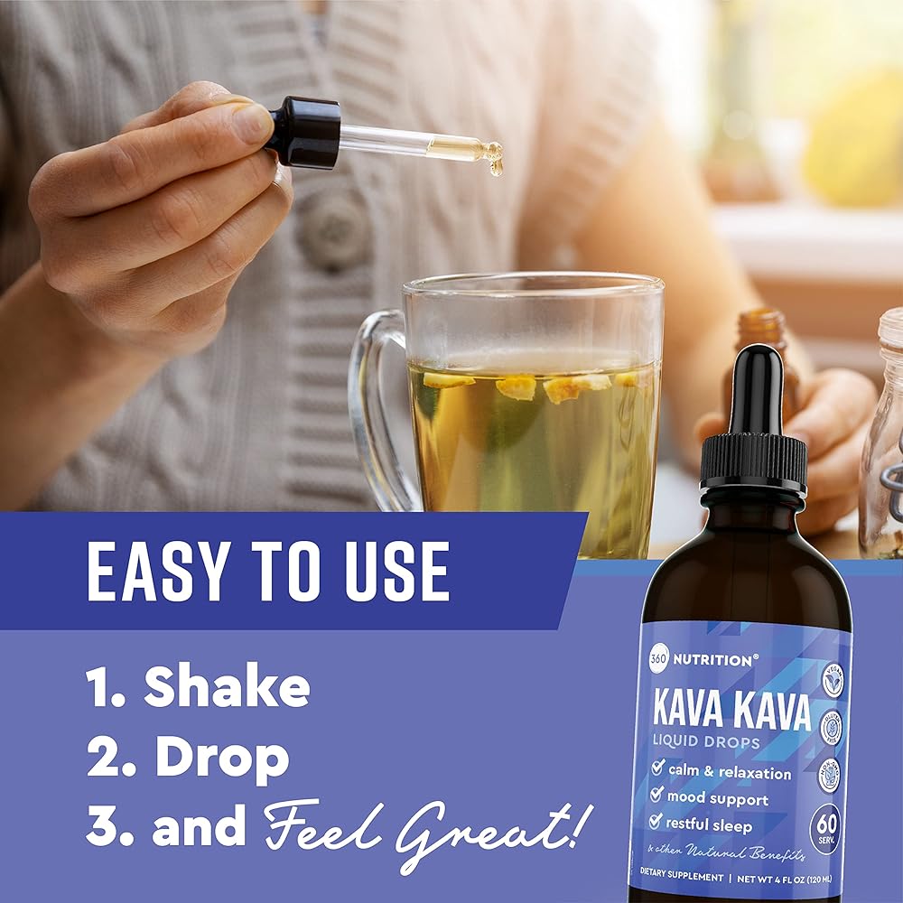 LIQUID KAVA DROPS: Experience the soothing benefits of 360 Nutrition Liquid Kava Drops, formulated to help promote relaxation. Our premium kava is known for its calming properties, making it the perfect natural solution for a hectic lifestyle.