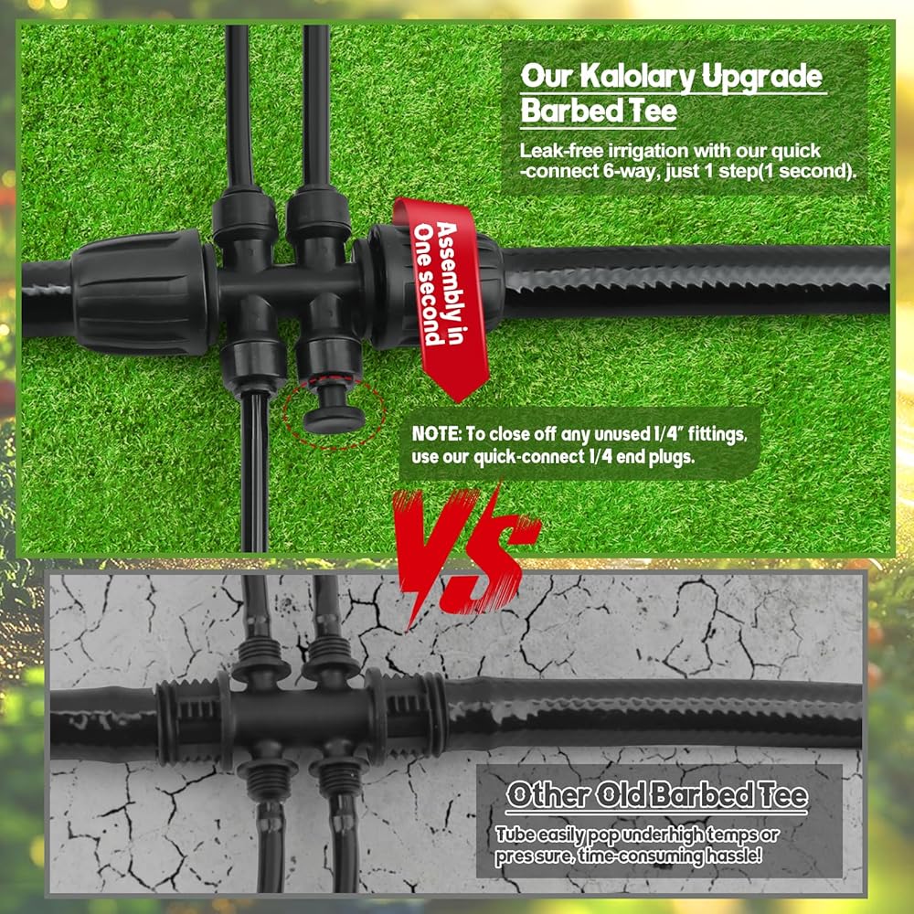 【Efficient Water Distribution】Kalolary 1/2'' to 1/4'' barbed tee quick connector are design to help eliminate low-pressure zones at the end of tubing by splitting your main 1/2” tubing into four targeted 1/4” distribution lines. Ensure consistent, direct watering to plant roots, reducing waste and promoting healthier, more vibrant growth in gardens or greenhouses.