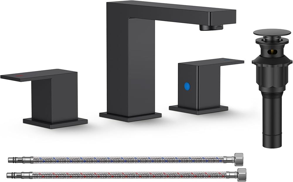 Advanced Splash-Free Design:This 8 Inch Widespread Bathroom Faucet features a 6.1 inch extended spout that directs water precisely into the basin, keeping countertops dry. The aerated stream reduces splatter and noise, combining practicality with a sleek modern bathrooms