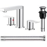 Easy 3-Hole Installation: This bathroom faucet 3 hole including 24" braided hoses (3/8'' threads), Y-connect adapter, and a pop-up drain. Clear instructions guide perfect for DIYers and pros alike, (Note:No overflow sink thickness must >0.76")