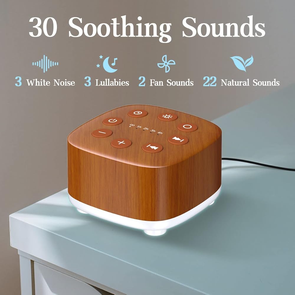 Meditation White Noise Machine Sound Machine 30 Soothing Sounds 12 Night Light 5 Auto-Off Timer Portable Sleep Machine for Travel Powered by AC or USB Sleep Therapy for Baby Kids Adults (Wood Grain)
