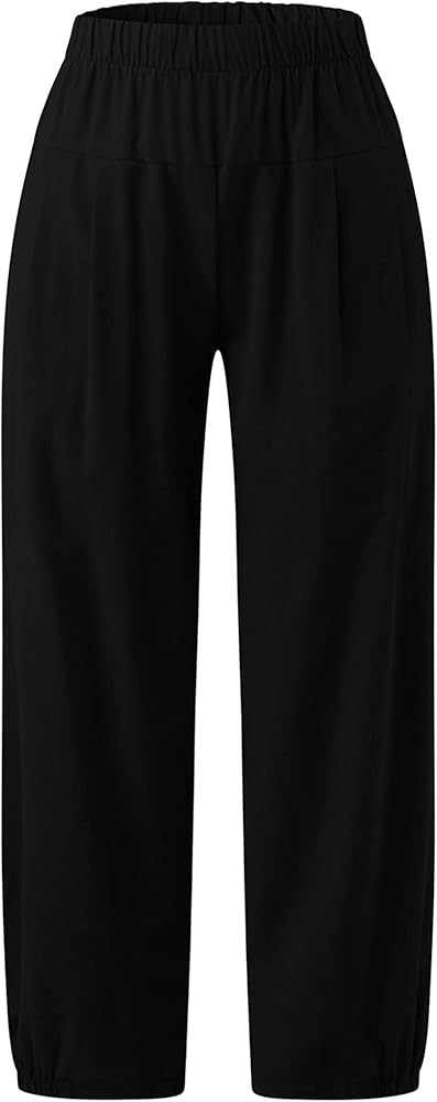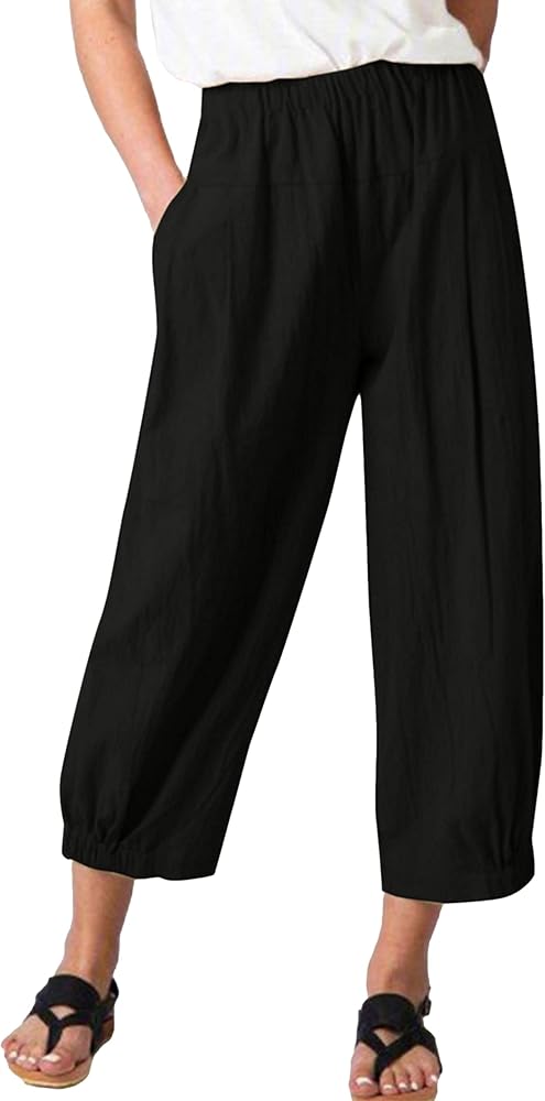 - Womens lounge hi waist cotton linen cropped capri harem sweatpants trousers can pair with shirts, tank top, crop tops