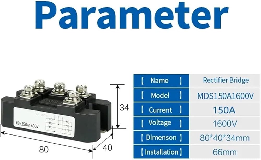 1PC MDS150A 3-Phase Diode Bridge Rectifier 150A Amp 1600V Copper 150 Celsius 80x40x33mm Metal Case Diode Bridge Control