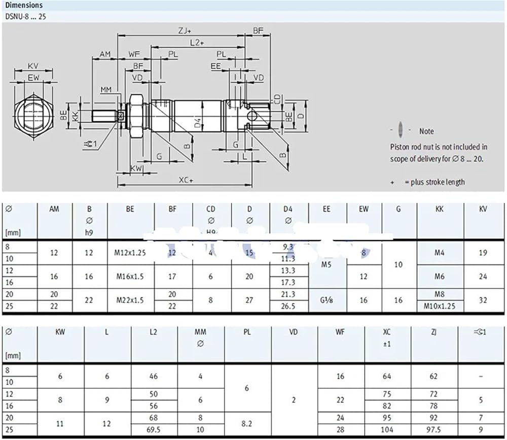 - 1pcs pneumatic cylinder DSNU bore 32mm DSNU-32-25/50/75/100/125-P/PPV-A type round double acting air cylinder
