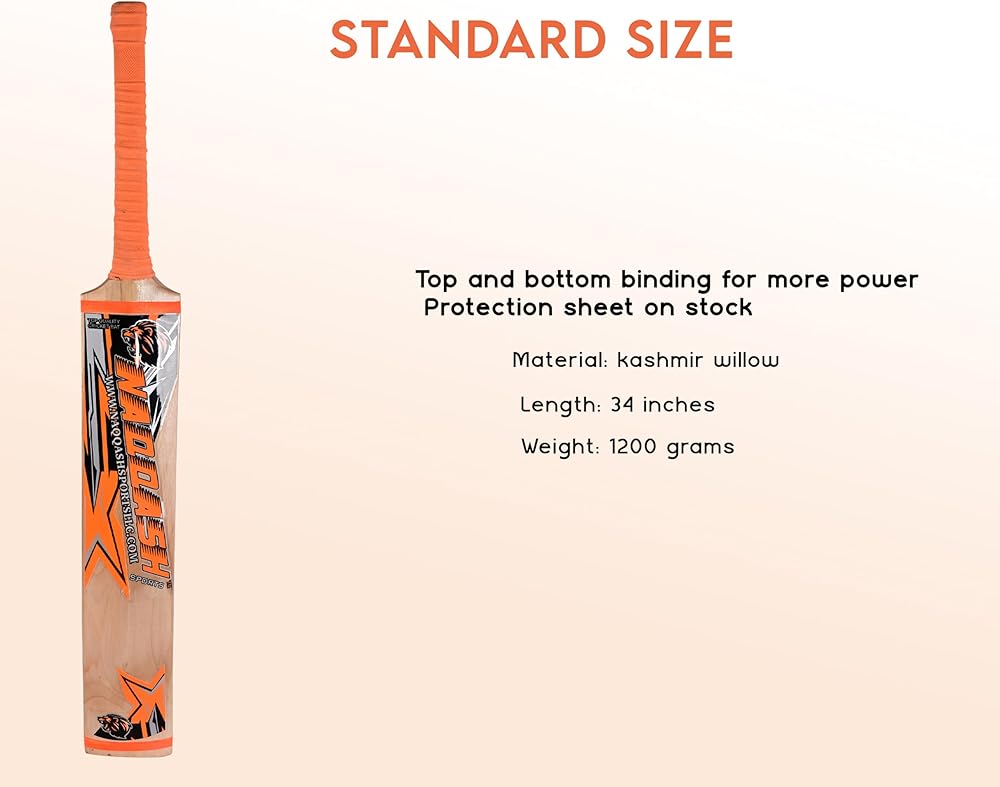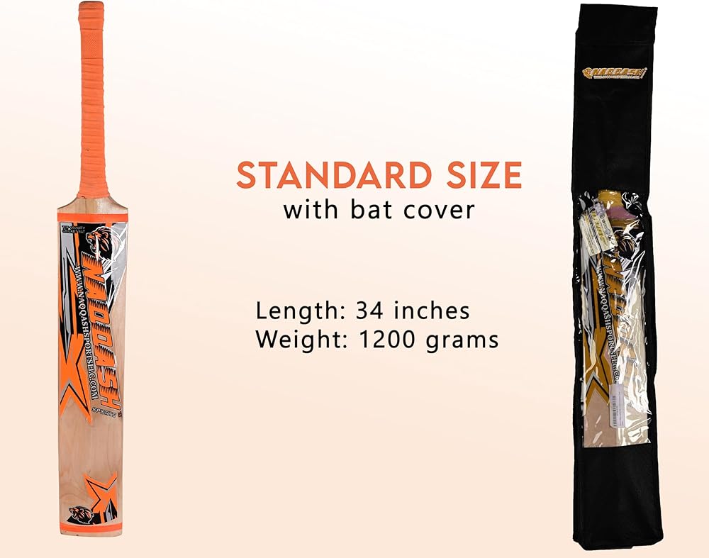 Naqqash Sports Kashmir Willow Hard Pressed Cricket Bat – Hard Ball & Hard Tennis Ball Professional Bat with Free Bag Cover Key Features: ✅ Premium Kashmir Willow – Hard Pressed – Designed for hard ball practice and professional hard tennis cricket matches, ensuring durability and powerful performance. ✅ Balanced & Durable – Crafted from high-quality hard willow wood, providing excellent balance, strength, and longevity. ✅ Optimal Weight & Size – Approx. 1200g | Length: 34 inches | Width: 4.25 inches, making it ideal for professional and advanced players. ✅ Comfortable Grip – Equipped with a top-quality comfort grip, ensuring a secure hold and enhanced control during shots. ✅ Reinforced Thread Binding – Above and below thread binding strengthens the bat structure, preventing cracks and ensuring long-lasting use. ✅ Protective Face Sheet & Chemical Toe Guard – Front face sheet protection enhances durability and safeguards the bat against damage. Chemical toe guard increases bat life by preventing moisture absorption and toe damage. ✅ Free Premium Bat Cover – Comes with a high-quality bat bag cover for easy storage and added protection. Why Choose Naqqash Sports? 🏏 Expert Craftsmanship Since 1968 – A trusted manufacturer of premium cricket equipment. 💯 Best for Hard Ball & Professional Hard Tennis Matches – Suitable for advanced players seeking durability and performance. 🚚 Fast & Secure Shipping – Delivered safely to your doorstep. Order Now & Experience Professional-Grade Performance!