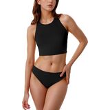 Design: This swimsuits top with a removable padding bra, round neck design, paired with low-waist period swim bottoms, the racerback two-piece design is full of sporty style.