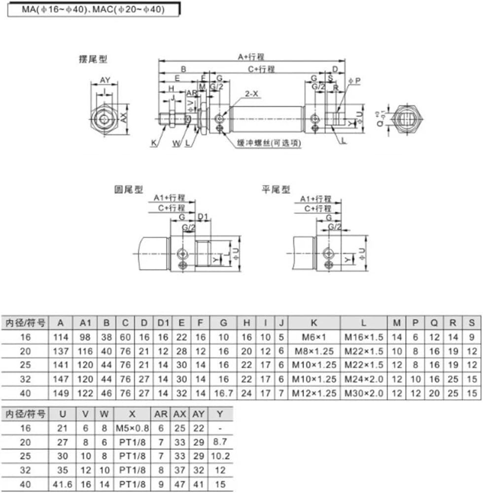 Product Name: Pneumatic Cylinder Double Action MA type