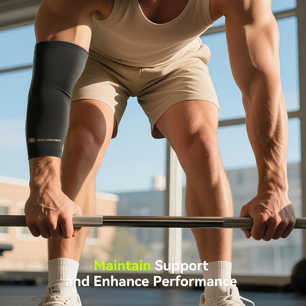 📏【Find Your Perfect Fit】 Two sizes are available. Measure the circumference 13 cm above the elbow joint to find your required size. If you encounter any issues (such as size, quality, or comfort) after receiving the product or during use, please feel free to contact us via Amazon. The SOLOEVER customer service team will provide a satisfactory solution within 24 hours. (Note: Includes 1 sleeve)