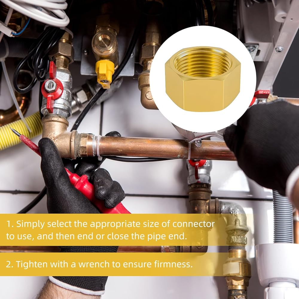 Easy to use: Each brass compression cap is designed with a hexagonal head and internal thread, making it easy to close the pipe end and disassemble. Brass nut gas line water line stop valve cap can be easily tightened with a standard wrench, saving time and effort
