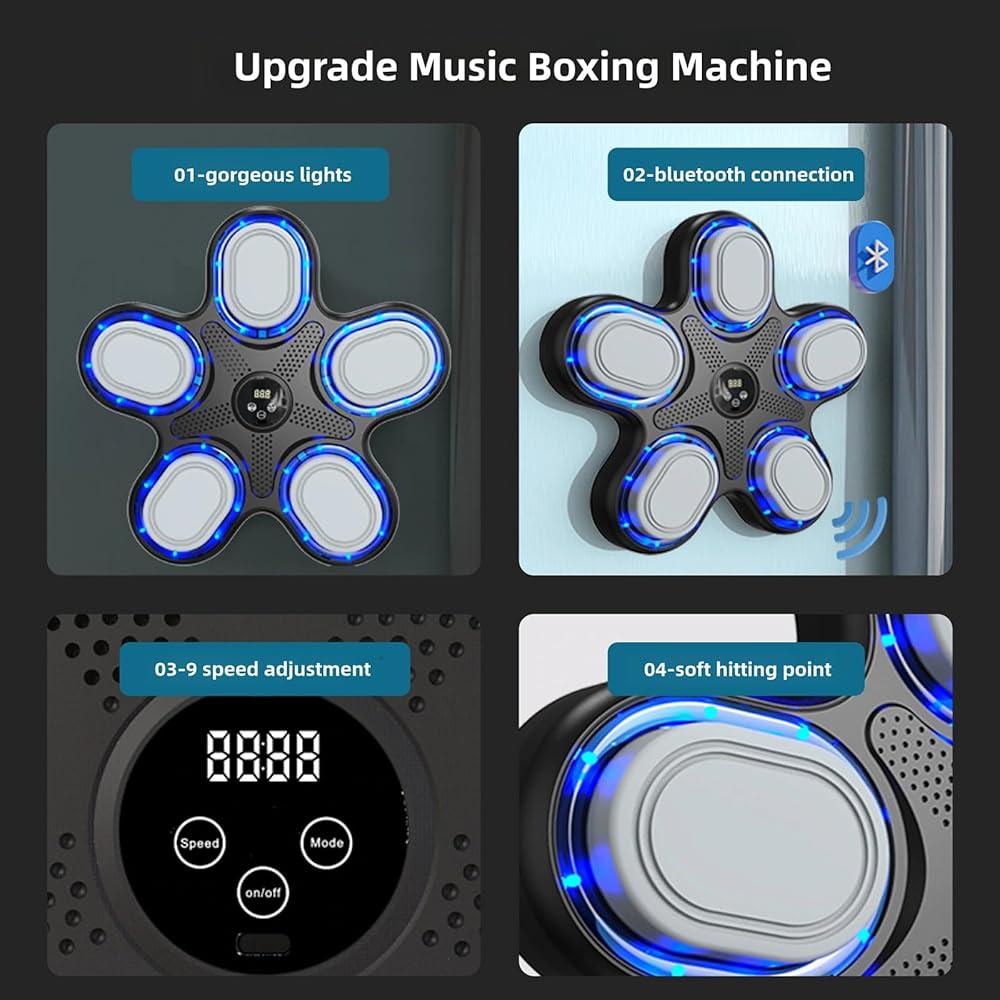 2024 Music Boxing Machine with Boxing Gloves, Smart Bluetooth Boxing Machine with LED Electronic Wall Mounted, Music Boxing Target Workout Punching Equipment for Home br>