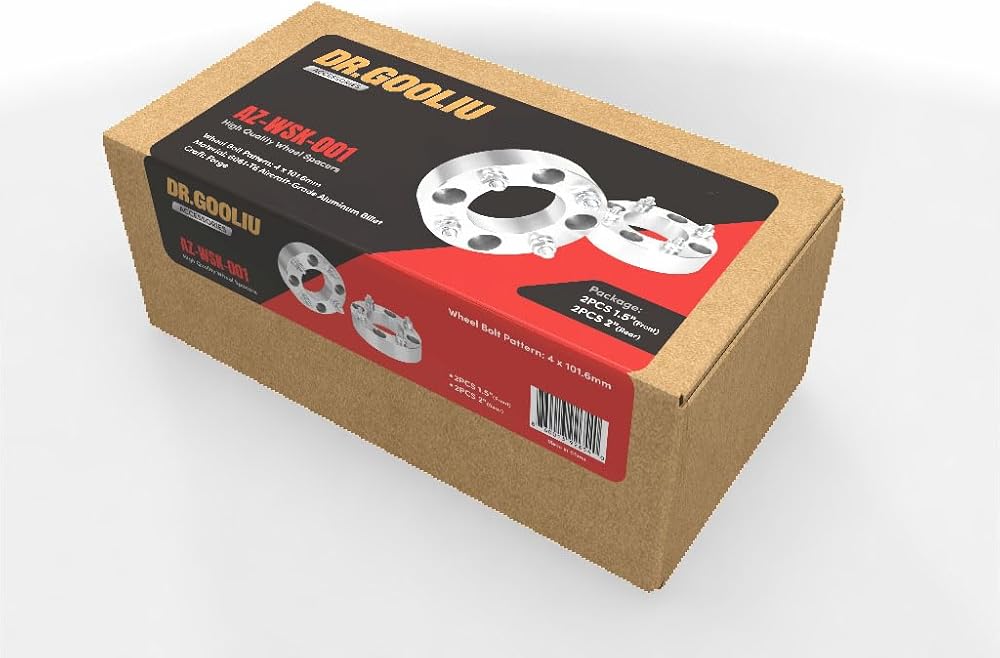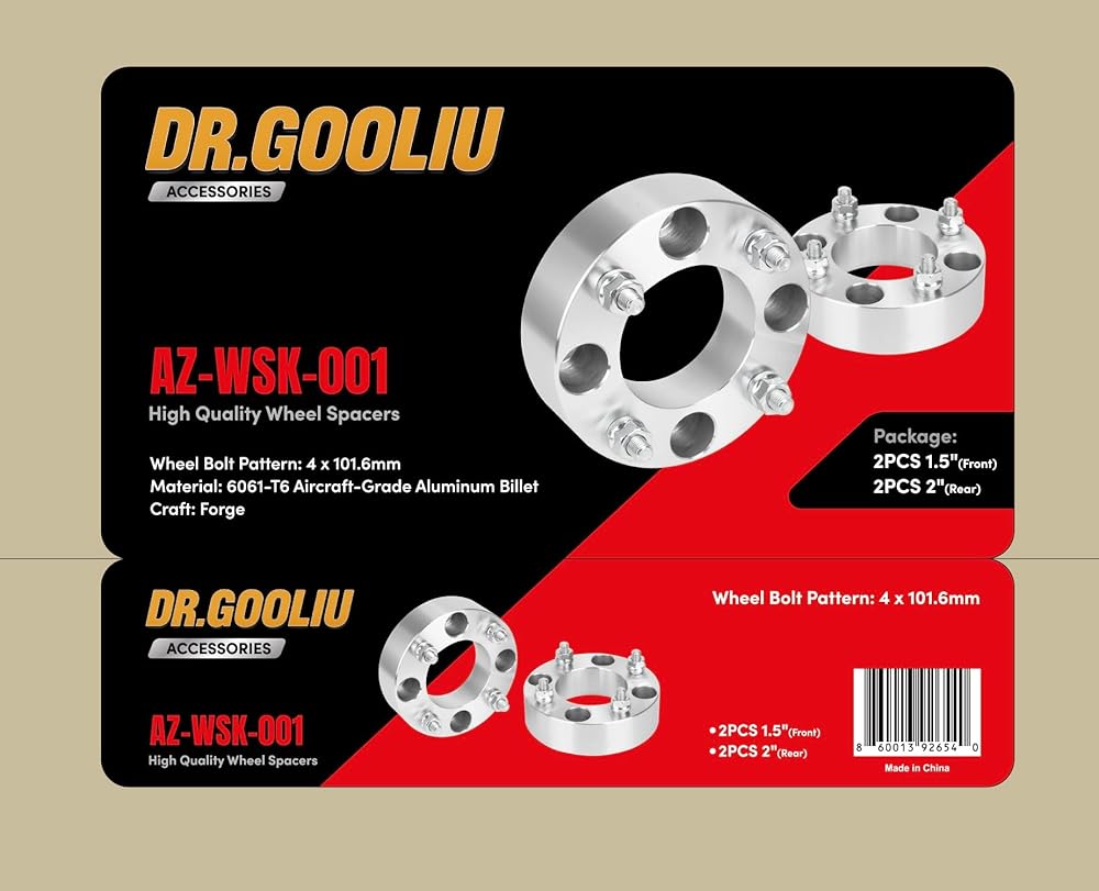 Enhance your golf cart with the Dr. Gooliu Wheel Spacer Kit with a universal fit, compatible with most 2P, 4P, and 6P models from top brands like Solana, EZGO, Club Car, Yamaha, Kandi, and Coleman. Crafted from premium 6061-T6 aircraft grade aluminum alloy, these spacers are lightweight yet sturdy. Experience improved handling and an upgraded look. Easy installation. After 25-50 miles, please check and retighten all hardware.
