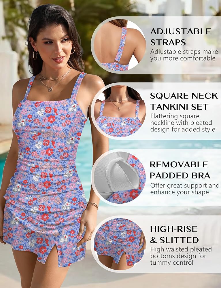 【loose fit style】 This tankini sets abdominal control swimsuit perfectly blends the charm of flirting with timeless elegance. Detachable breast pads and swimsuits elegantly highlight the natural curves of the body. This tankini swimsuit is tailor-made for women who crave beachwear and is an ideal choice.