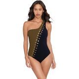 About The Brand: Sleek, Sultry, And Smooth. Copernicus Saturn One-Piece In Evoo Design Details: By Miraclesuit, Extra Spandex For A Snugger Fit Creates Smoothing And Gentle Shaping, Medium Allover Control For A Full Body Embrace, Removable Soft Cup And Side Bone Adds Shape And Contouring, Sleek Asymmetrical One Shoulder Styling Adds Length, Grommet Detail Down Front Shell: 59% Nylon, 41% Spandex Lining: 73% Nylon, 27% Spandex Hand Wash Imported