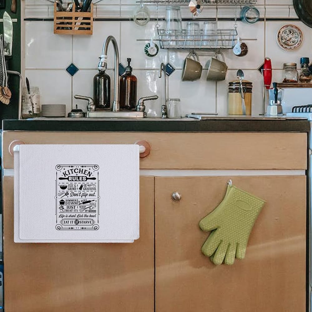 Durable & Reusable Design: Kitchen towels decorative set reinforced edges prevent fraying, and the sturdy waffle weave holds up to frequent washing, making it a long-lasting, eco-friendly alternative to paper towels. these towels effortlessly wipe surfaces without leaving lint, ideal for dishes, countertops, and glassware