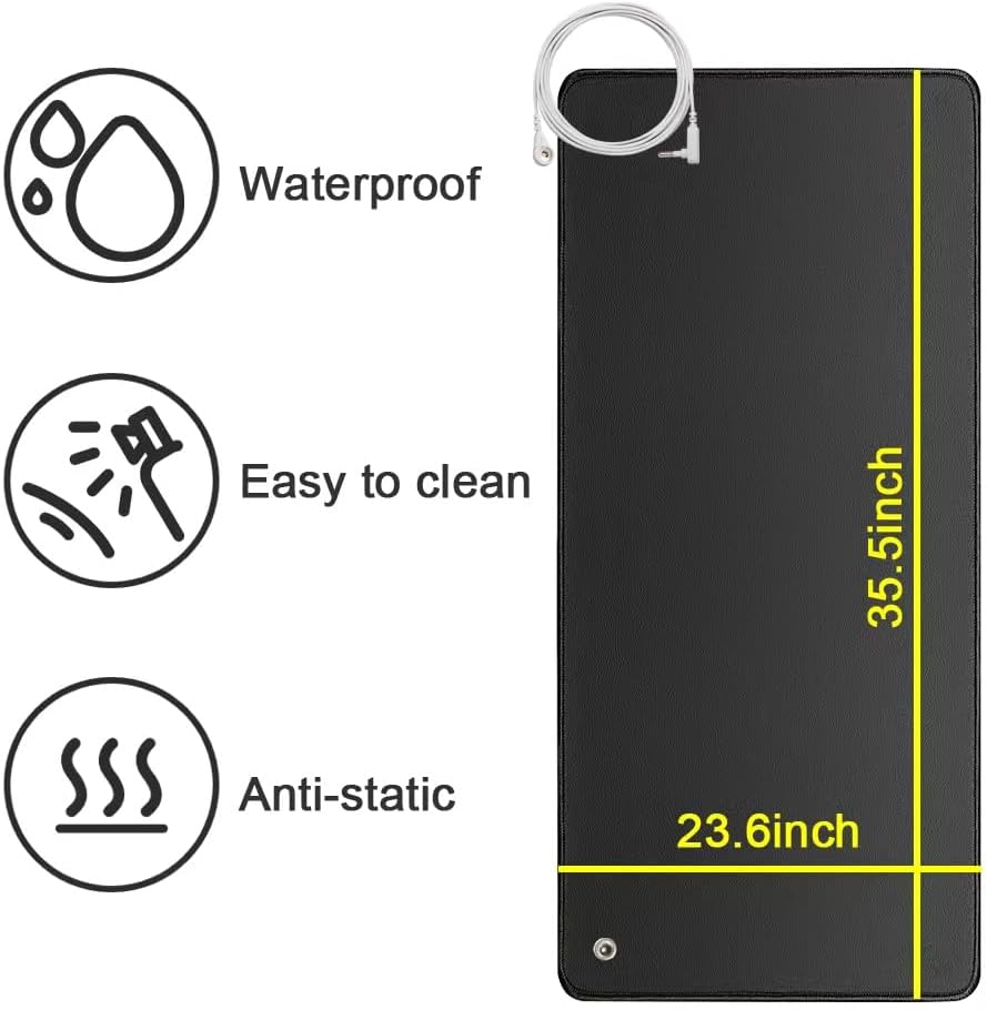 【 Package includes 】 -1 conductive grounding pad (23.6 x 35 inches/30 x 90 centimeters), 1 15 foot grounding wire, 1 grounding wrist strap, and 1 user guide.