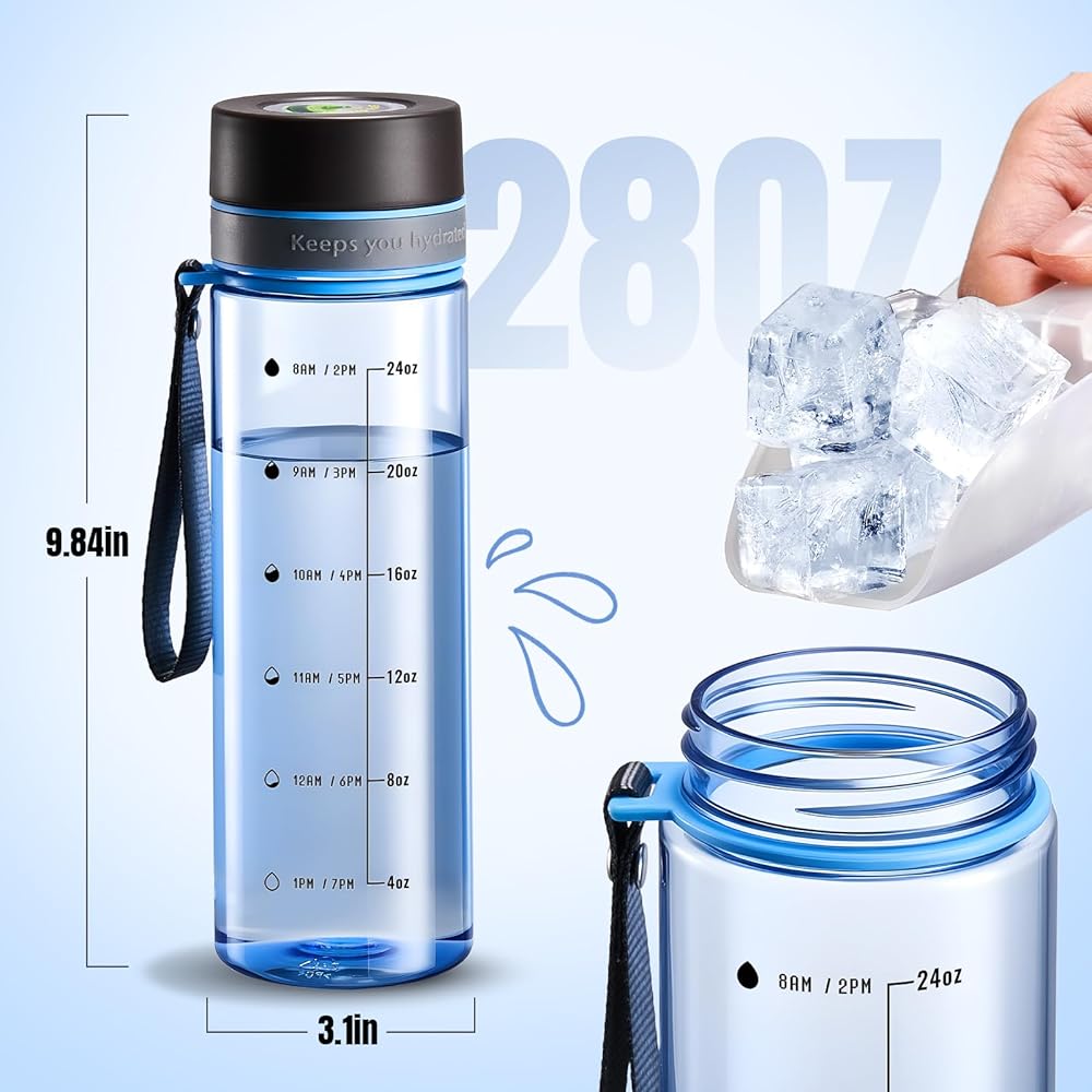 Motivational Time Marker: Our 28OZ reusable water bottle with time marker, reminding you to stay hydrated. Whether you're at work, the gym, or on the go, this reusable water bottle reminds you to drink regularly—making it an ideal gym water bottle.