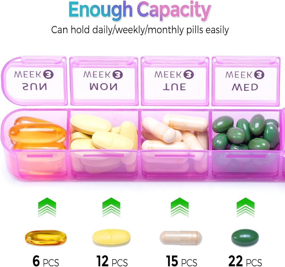 🧡Stor 4 Week Pills: Our monthly pill organizer 1 time a day has 4 removable weekly pill containers inside 1 big case, can plan your meds for 4 weeks or 1 month ahead.