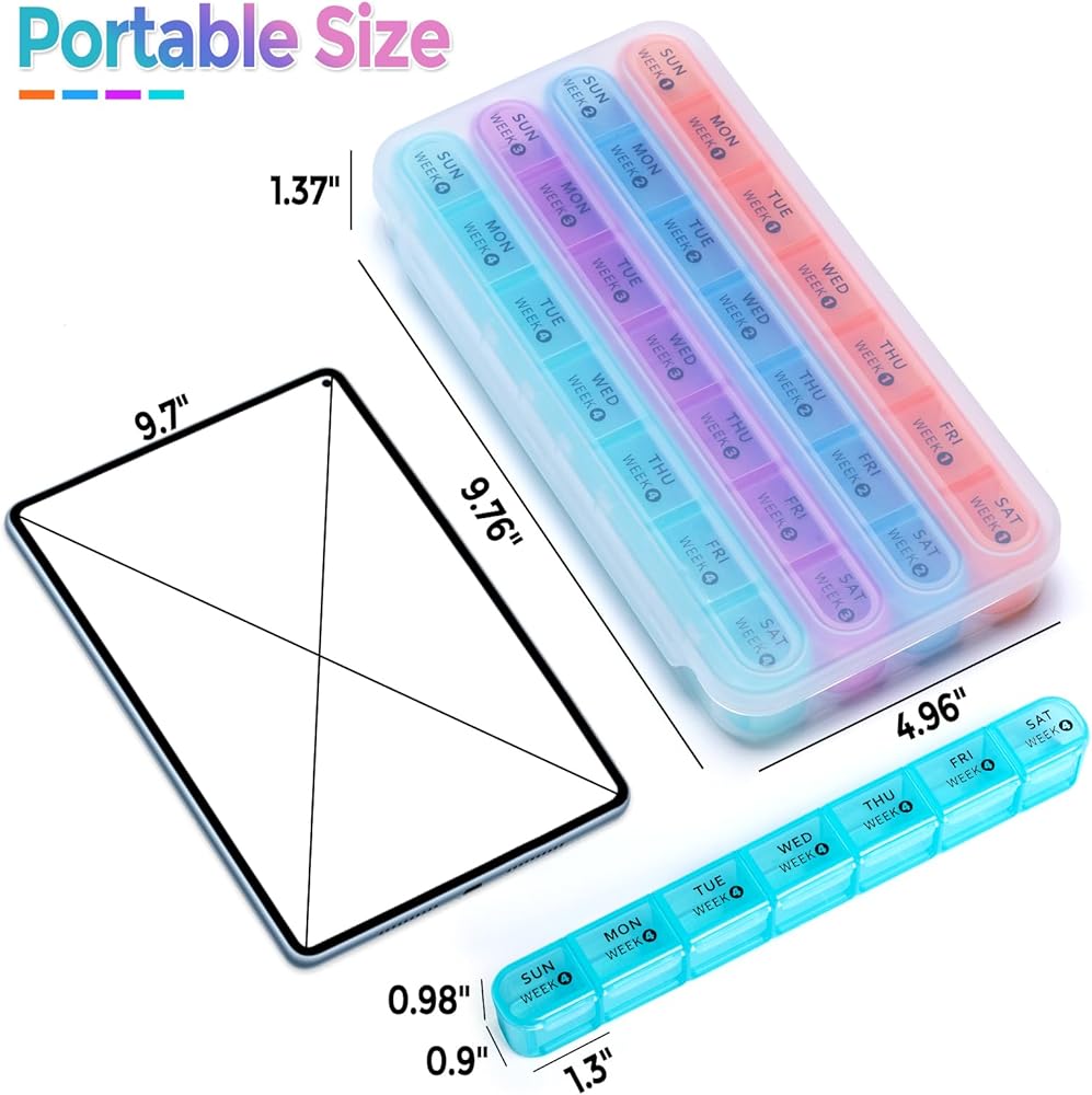 🧡Easier to Use: Our every 1 month pill organizer has vibrant colors, clear lables that are highly legible, sturdy and fit together tight, making individual pill containers are easy to open and track.