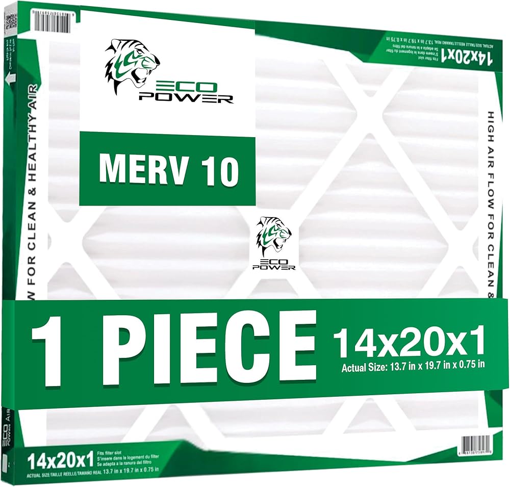 ECO POWER 14x20x1 Air Filter MERV 10, Pleated HVAC AC Furnace Air Filters Replacement (Actual Size: 13.6 x 19.6 x 0.75 Inches)