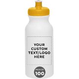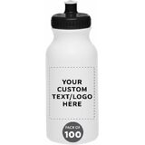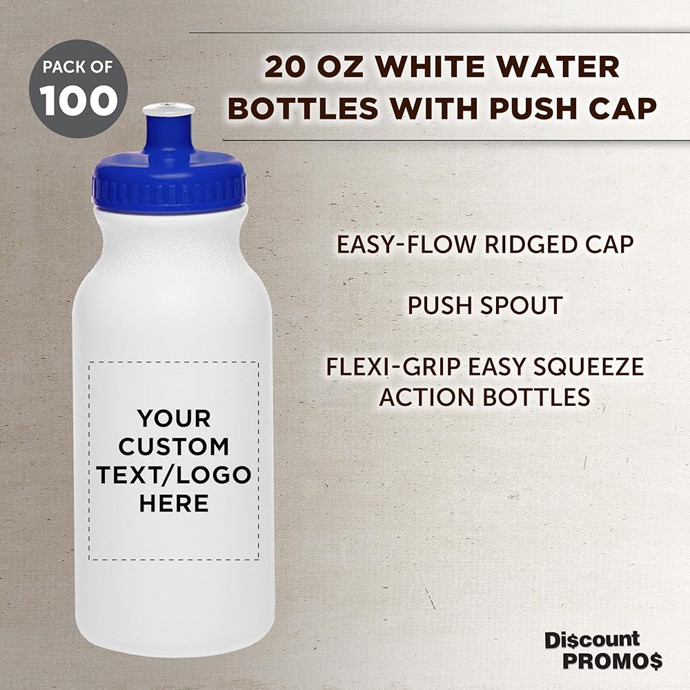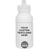 20 oz. white promotional water bottles with customizable surface Each bottle offers a smooth blank background designed to showcase your company logo, tagline, or custom artwork in bold detail, making them ideal for trade shows, brand activations, or bulk promotional giveaways.
