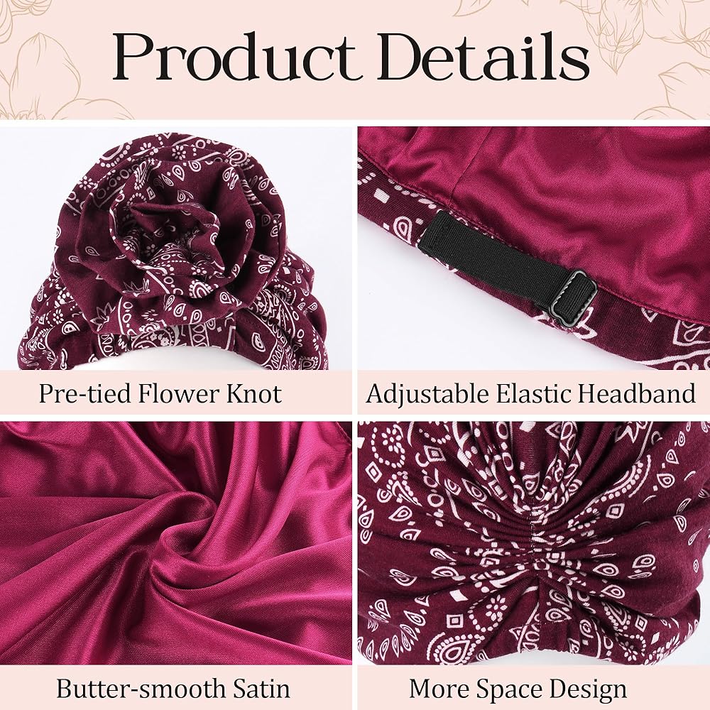 Comfort & Fit: Made from a stretchy, breathable soft modal fabric, and smoother than silk satin lining, this turban ensures a snug yet gentle fit for all-day comfort. One size fits most head sizes, with a adjustable elastic band design that creates natural, flattering folds for a custom-shaped silhouette