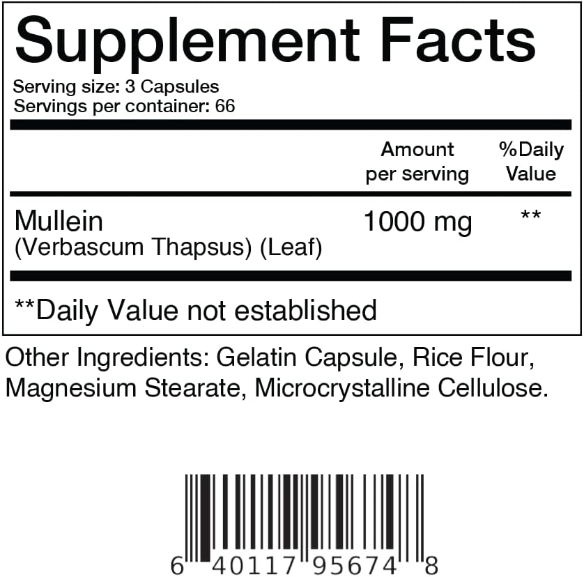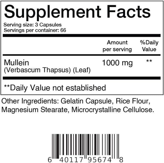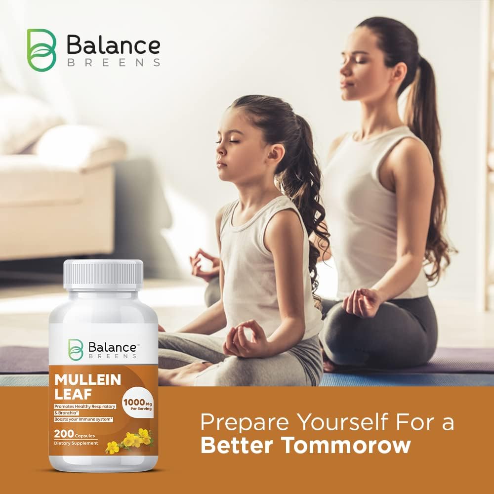𝗛𝗜𝗚𝗛 𝗣𝗢𝗧𝗘𝗡𝗖𝗬 𝗠𝗨𝗟𝗟𝗘𝗜𝗡 𝗖𝗔𝗣𝗦𝗨𝗟𝗘𝗦: Unlike other Mullein extract capsules available in the market, these POTENT capsules by Balance Breens contains 1000 mg Mullein (Verbascum Thapus) Leaf extract per serving. Our GMO-free Mullein Leaf capsules are All-Natural and Gluten-Free.