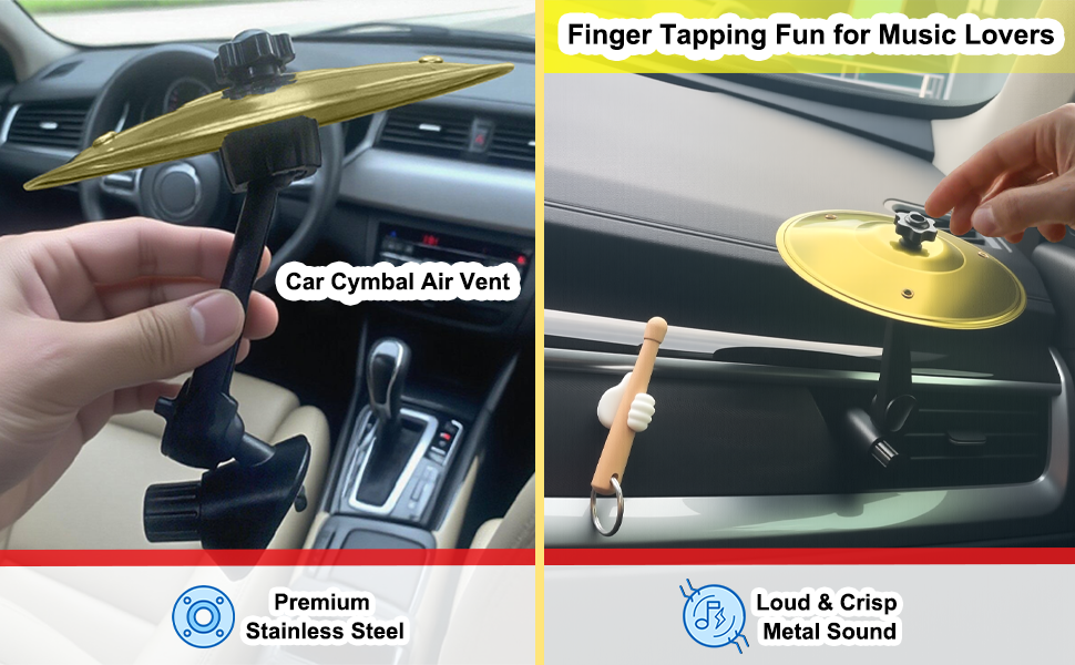 Includes Free Drumstick & Thumb-Shaped Holder (Exclusive Bonus!) Unlike basic car cymbals, ours comes with a14cm drumstick + a unique thumb-shaped holder (2.9g, 1.5x2.5cm, PVC). The ergonomic design grips securely on dashboards or vents, keeping your drumstick always within reach—no more fumbling while driving!