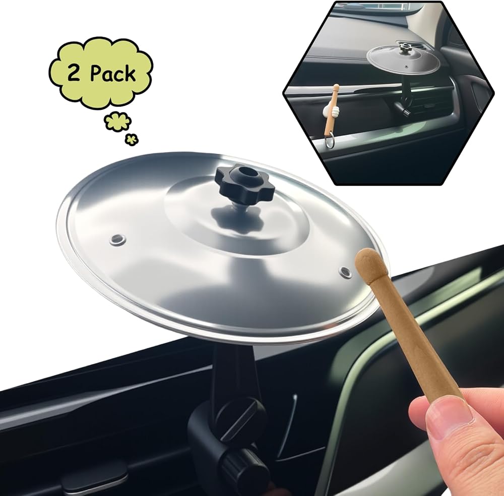 2 Pack Car Cymbal with Free Drumstick &Thumb Holder,Mini Drum Crash Car Cymbal Air Vent, Fun Musical Accessory for Drivers, No Tools Needed, Fits All Vehicles (Silver)
