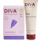 DIVA Cup & Shaker - Medical Grade Silicone Cup for Period Care - Reusable Menstrual Cup with Shaker for On-The-Go Cleansing - Wear Up to 12 Hours - Model 1 (for Medium to Heavy Flow)