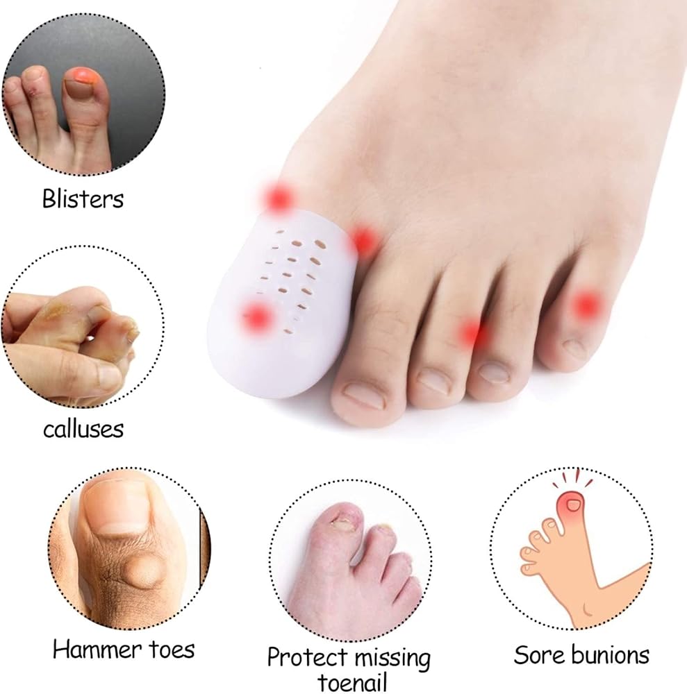 Big Toe Protector, 10PCS Breathable Gel Toe Cap Silicone Toe Cover Sleeves with Holes, Provides Relief from Missing or Ingrown Toenails, Corns, Blisters, Hammer Toes, Reduce Friction