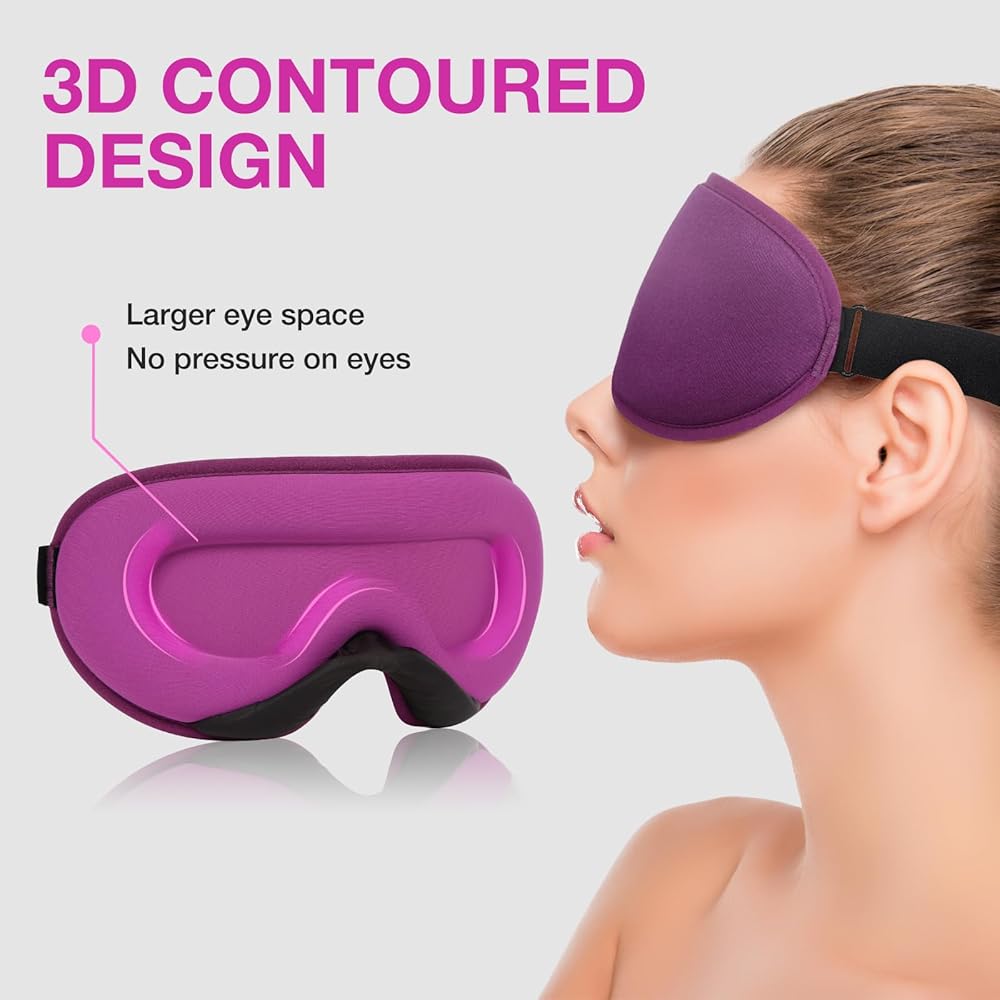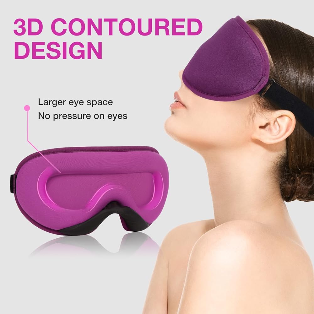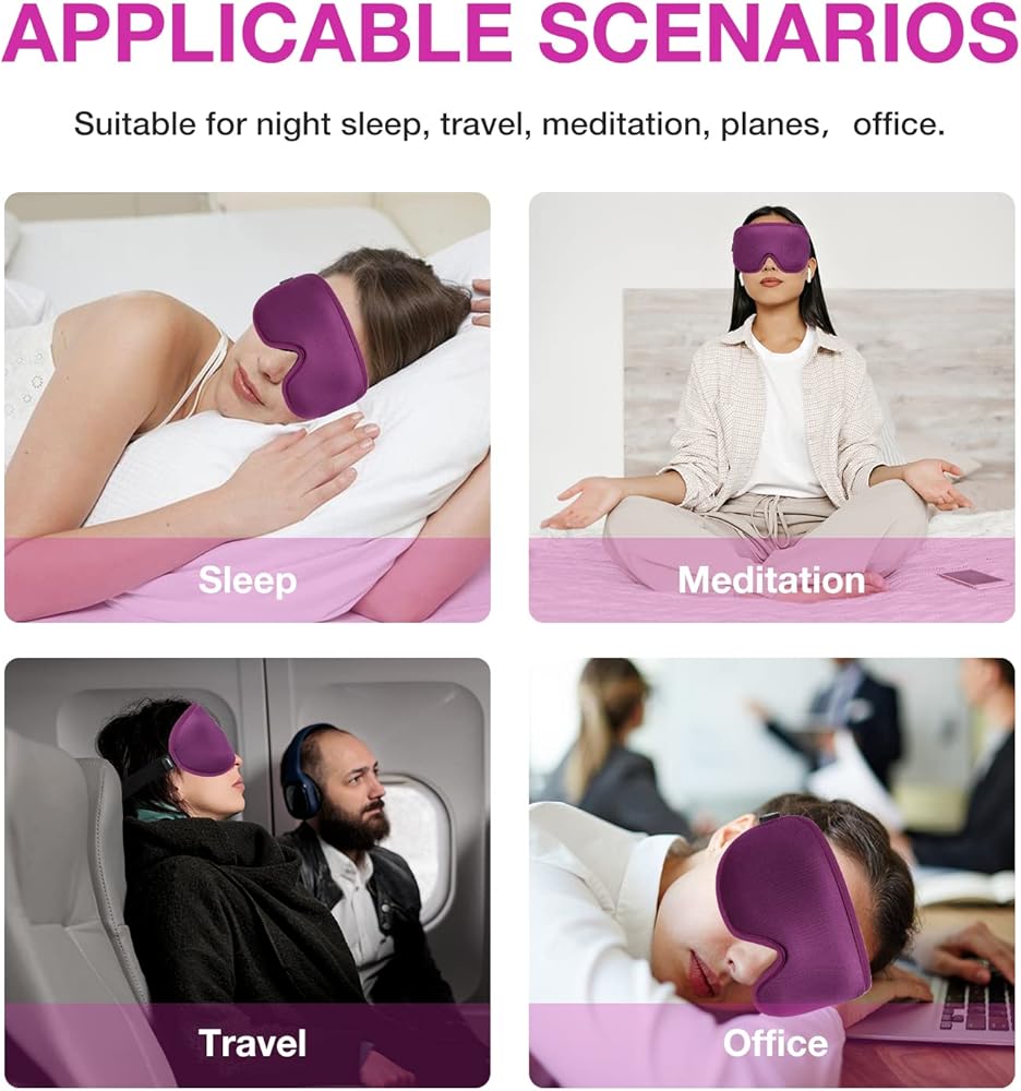 [NO PRESSURE ON EYES]: The eye masks are made of slow rebound soft foam in 3D contoured, giving eyes wide space and NO pressure. Also block all light to enable you fall asleep fast and deeply.