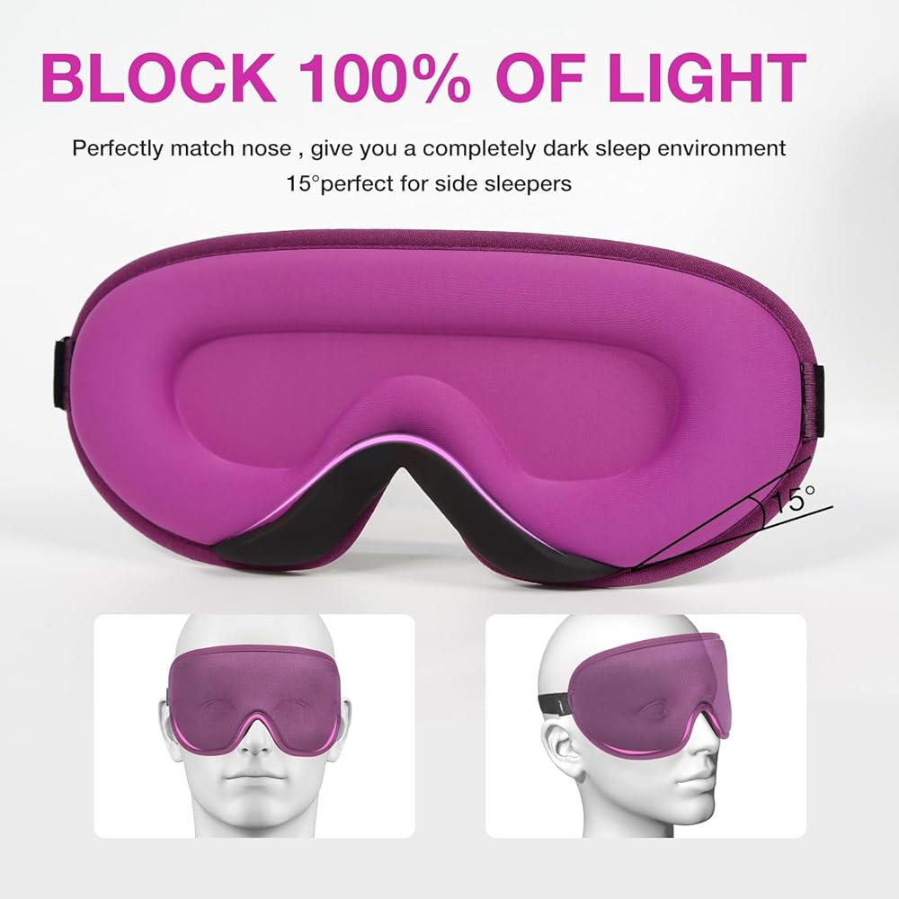 [EFFECTIVELY BLOCKING LIGHT]: The unique design of eye mask with nose bridge can perfectly match nose and effectively blackout light, creating a pitch-black environment for restful, undisturbed sleep.