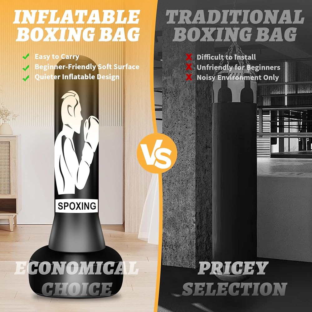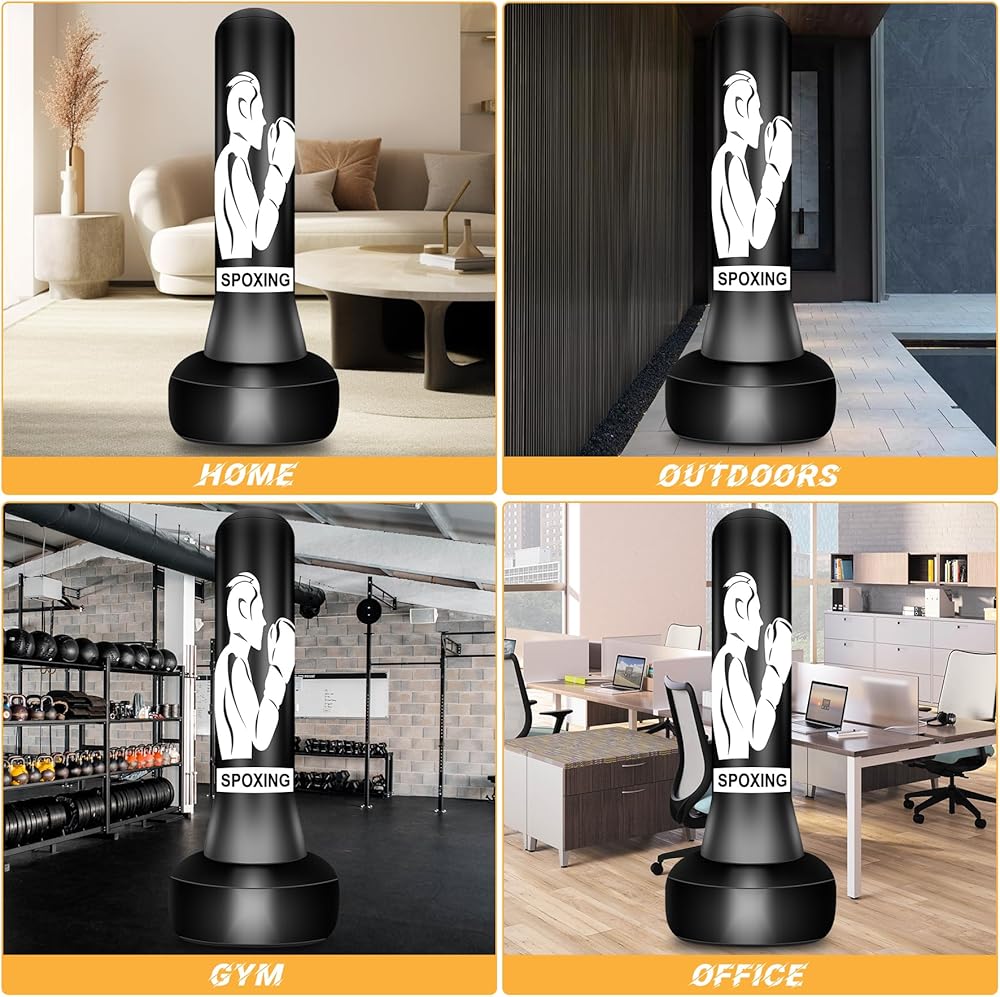 Punching Bag for Adults: Vobab boxing bag are factory-inspected for top quality, ensuring no air leaks for uninterrupted workouts; The Punching Bag is 70'' tall, perfect for teens and adults; High quality PVC material make the standing punching bag more durable (Boxing gloves and pump not included)Suitable for children aged 36 months and above.