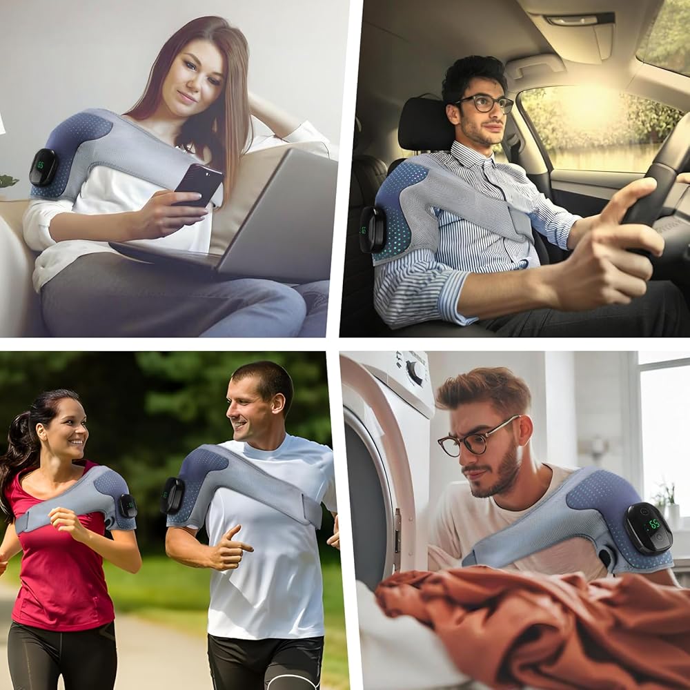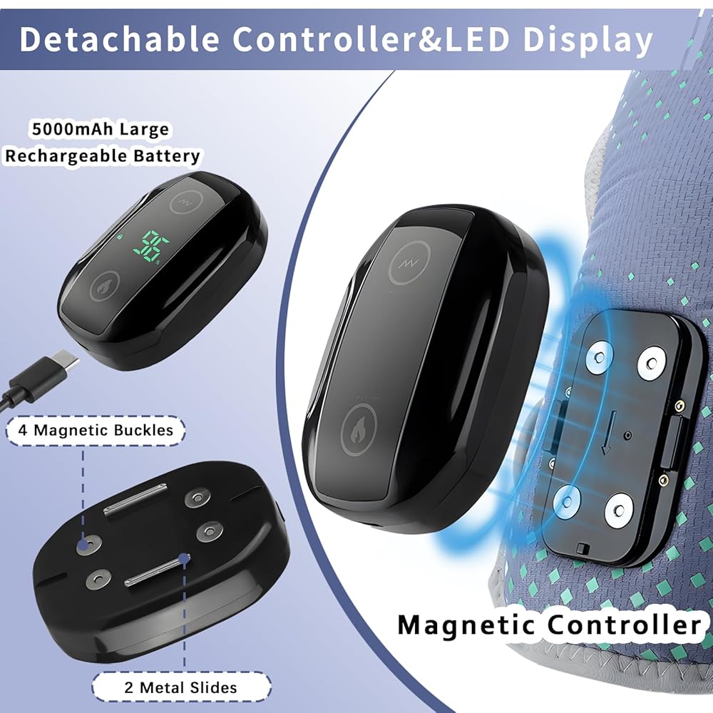 【Detachable Magnetic Controller Design】Combined with ergonomic tailoring makes this shoulder guard fit the shoulder contour closely, giving you a comfortable wearing experience. Detachable magnetic design makes it easier for you to adjust controller mode, and it brings great convenience to people especially shoulder injuries. Powerful magnetic base secures the controller in their designated places, you don't have to worry about it falling. Note: Please fully charge the shoulder heating pads before first use for better effect.