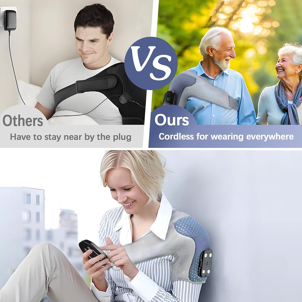 Heated Shoulder Wrap with Massage, Cordless Shoulder Heating Pad with Removable Controller, Heated Shoulders Brace Massager with 3 Vibration & 6 Heat Levels, Heating Pad for Neck Shoulders Relieve