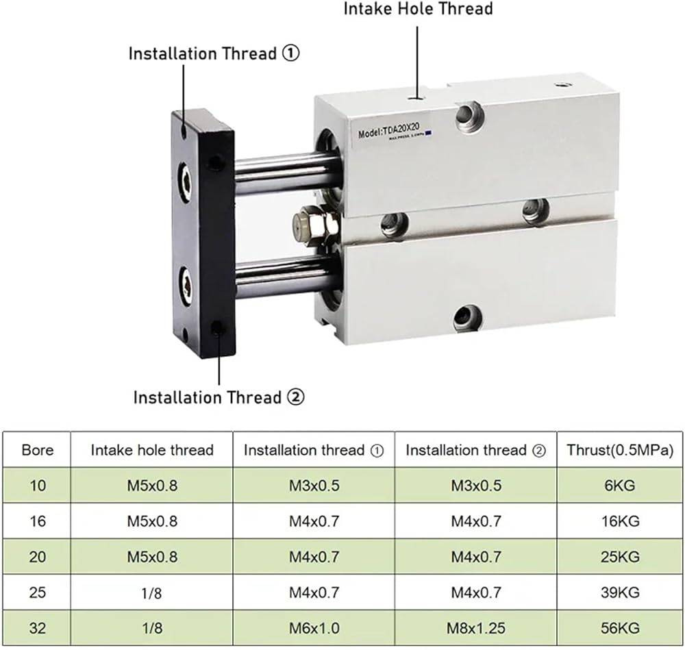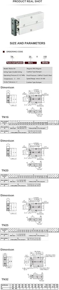 - 1pcs Double Rod TN Type Pneumatic Cylinde Air Bore 10mm 16mm 20mm 25mm 32 Small Aluminum Alloy Stroke 30 35 40 45 50 60 70 75mm