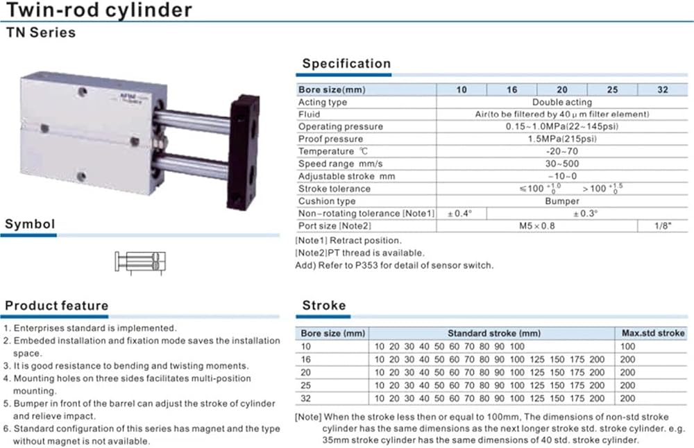 - 1pcs TN20X10S TN20X20S TN20X30S TN20X40S TN20X50S TN20X60S TN20X70S TN20X80S Pneumatic air Twin-rod cylinder TN TDA Series