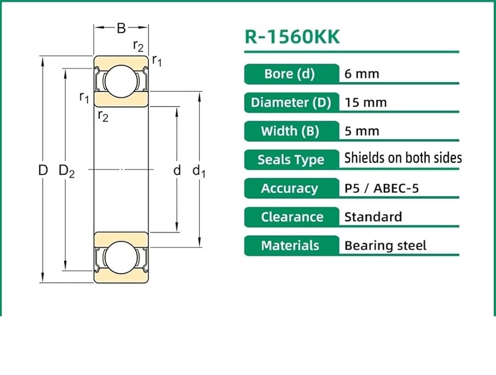 1pcs Bearing R-1560KK 619/6-2Z 696-2Z 6x15x5 696 696ZZ ABEC-5 Shielded Deep Groove Ball Bearings Single Row