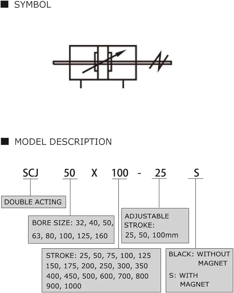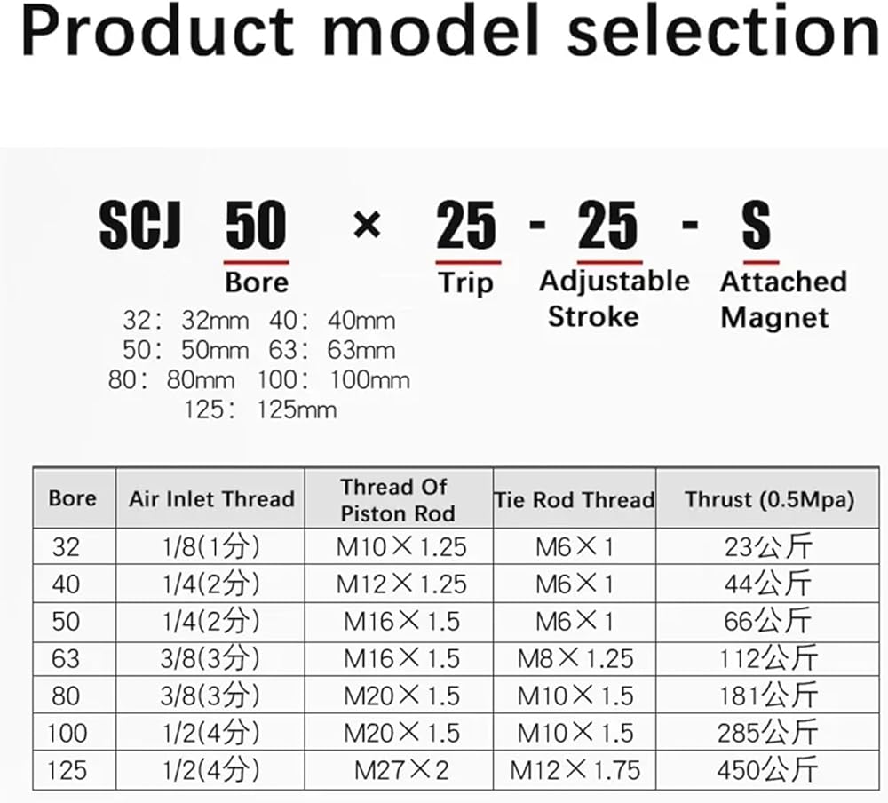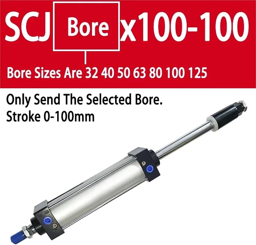 SCJ32 40 50 63 80 100 125mm Bore Adjustable Stroke Aluminum Alloy Double Acting Piston Tools Standard Air Pneumatic Cylinder(Stroke 100-100mm,Bore 32mm)