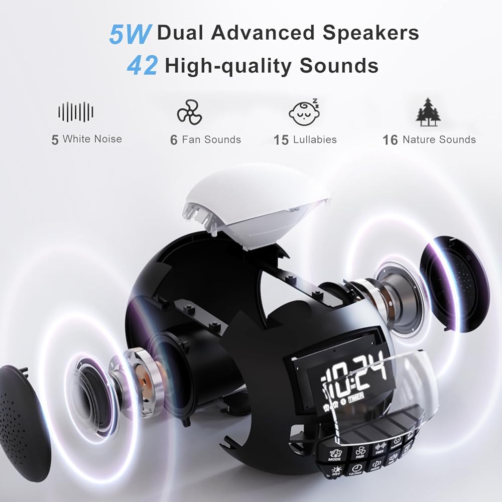 🔺【42 Hi-Fi Soothing Sounds】:This sound machine for adults can play 5 Noise Sounds (TV Snowflake /Pink /White Noise etc.,), 6 Fan Sounds (Box Fan /Industrial Fan etc.,), 15 Lullabies (Hush /Mozart /Goodnight Lullaby etc.,), 16 Nature Sounds (Rain /Heartbeat /Thunderstorm /Stream /Ocean /Piano etc.,). All kinds of sound type meet your different needs.
