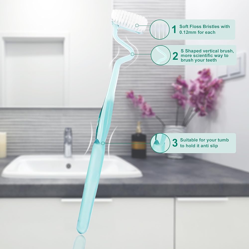 Soft S-Shaped Manual Toothbrush for Adults Sensitive Gums,Nano Floss Bristles Vertical Tooth Brushes with Candy Color Deep Clean for Junior Youth Teeth Brush (1 Green)
