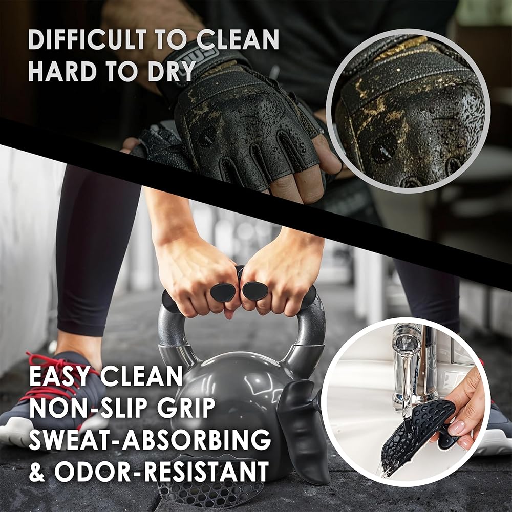 【Easy to Clean & Long-lasting】Crafted from high-quality rubber, these gym grips are water-resistant and easy to clean—simply rinse with water or wipe them down after use to keep them fresh and hygienic. Unlike traditional fabric gloves that soak up sweat and degrade quickly over time, our grips resist wear and tear, maintaining their shape and performance even after repeated use. Their low-maintenance design makes them a reliable and long-lasting workout accessory for daily training