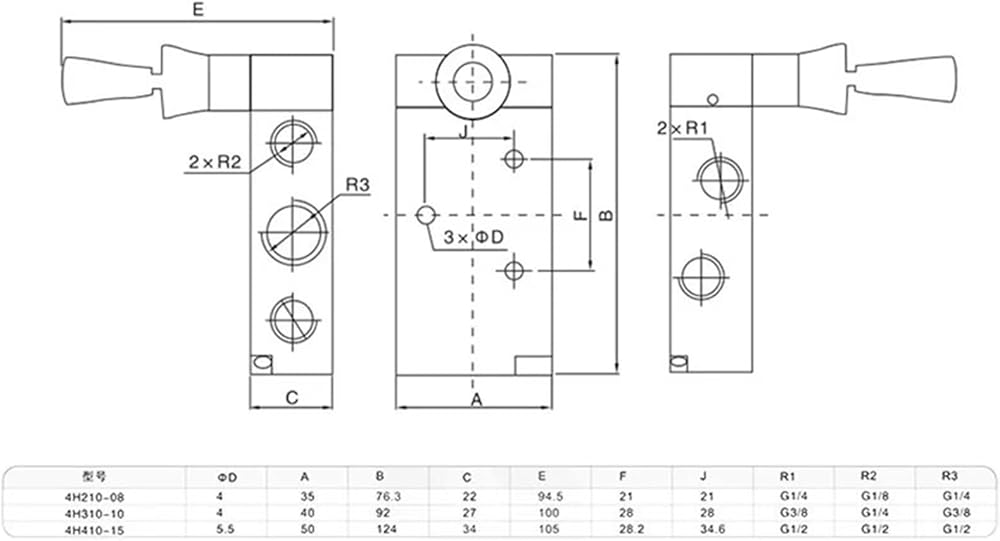 1pcs 4H210-08 4H310-10 Cylinder Manual Control Valve Pneumatic Two-Position Five-Way reversing Valve(4H210-08,with 4mm Fittings)